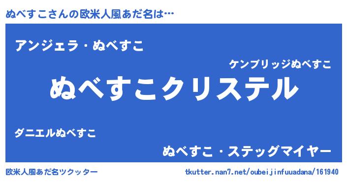| ファンタジー風あだ名 | 『エターナルヌベスコー』『ゼヌベトゥ』 |