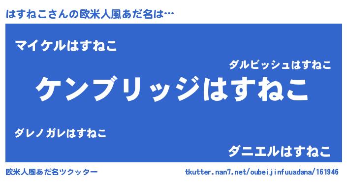 | 男性向けラノベタイトル風あだ名 | 『Re:はすねこから始める異世界生活』 |