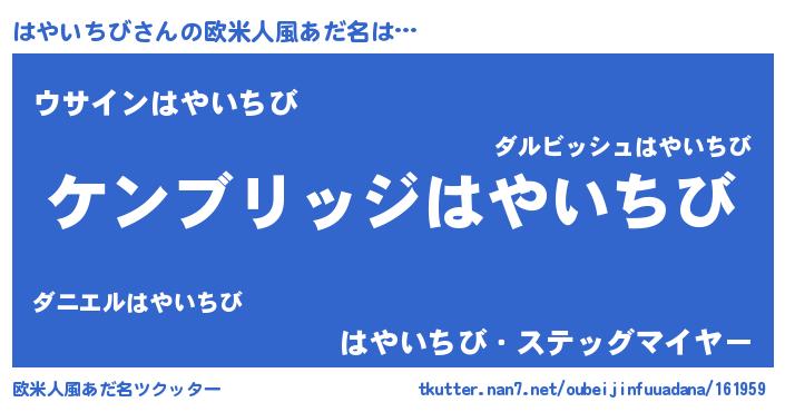 | 意味不明あだ名 | 『自称はやいちび』『永久保存はやいちび』 |