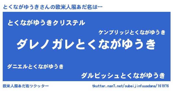 | ヒーロー風カッコイイあだ名 | 『仮面トクダー』『ネオトクナガユウキ』 |