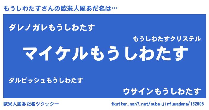 | ヒーロー風カッコイイあだ名 | 『スーパーモウシワタス』『仮面モウダー』 |