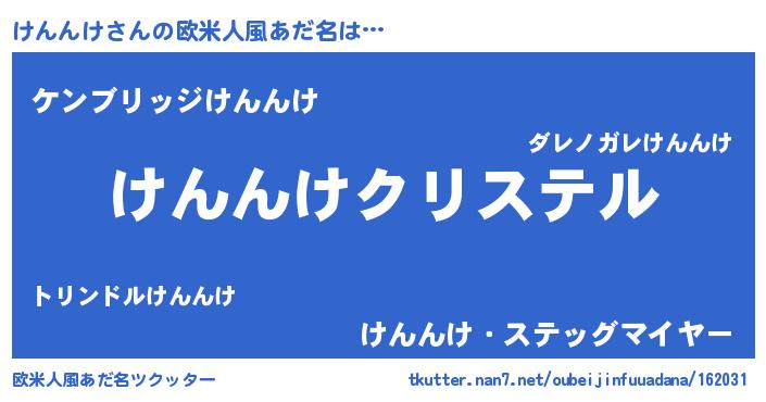 | 意味不明あだ名 | 『けんんけフォーエバー』『自称けんんけ』 |