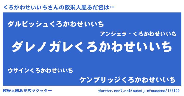 | 男性向けラノベタイトル風あだ名 | 『この素晴らしい世界にくろかわせいいちを!』 |