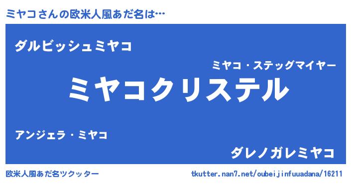 | ファンタジー風あだ名 | 『エターナルミヤコー』『ミヤディッシュ』 |