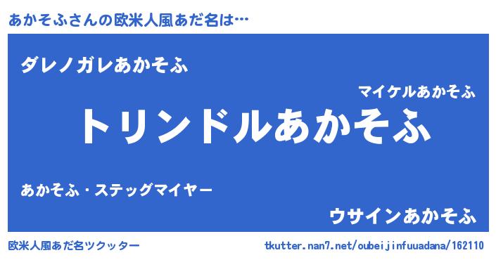 | 男性向けラノベタイトル風あだ名 | 『転生したらあかそふだった件』 |