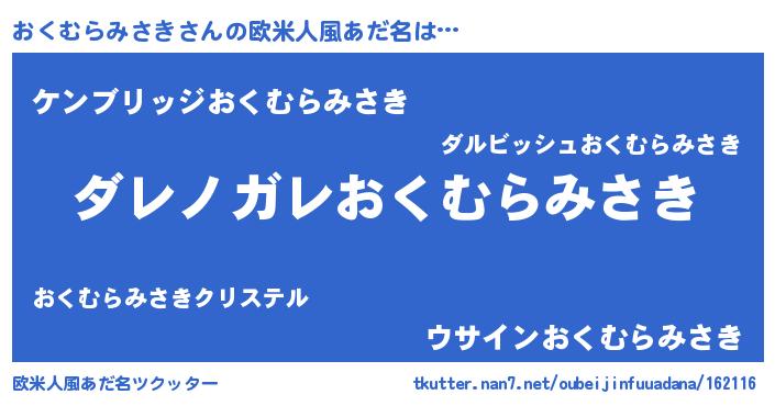 | ヘコむあだ名 | 『おくを』『おくむらみさき(笑)』 |