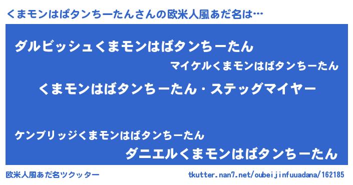 | 男性向けラノベタイトル風あだ名 | 『緋弾のクマモンハバタンチータン』 |