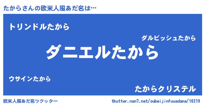 | ヒーロー風カッコイイあだ名 | 『正義の使者たから』『ネオタカラ』 |