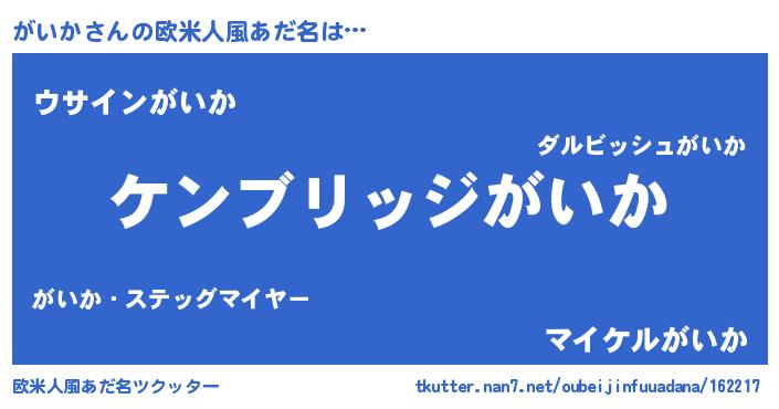 | 意味不明あだ名 | 『自称がいか』『とにかく怪しいがいか』 |