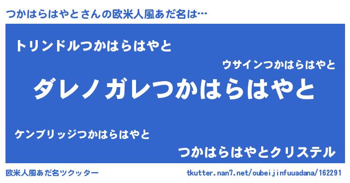 | 男性向けラノベタイトル風あだ名 | 『この素晴らしい世界につかはらはやとを!』 |
