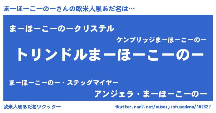 | 男性向けラノベタイトル風あだ名 | 『まーほーこーのー~年齢イコール彼女いない歴の魔法使い~』 |