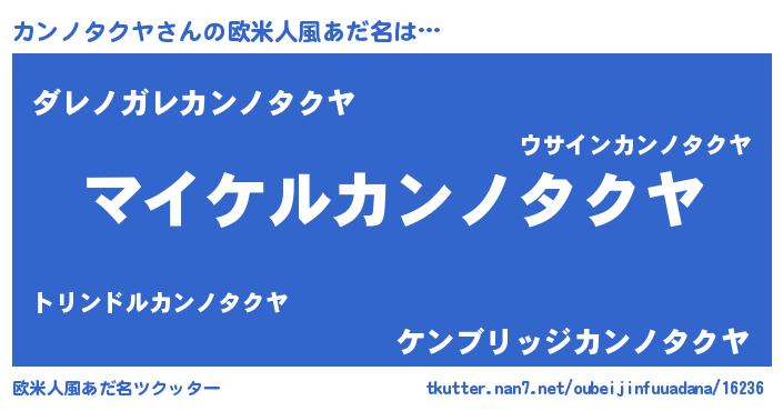 | 男性向けラノベタイトル風あだ名 | 『カンノタクヤアートオンライン』 |