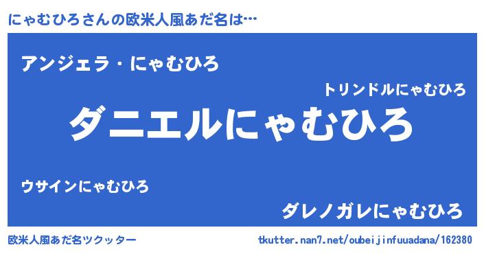 | 胡散臭い通販商品みたいなあだ名 | 『100人中100人が認めたマグネット磁石…その名も「にゃむひろ」』 |