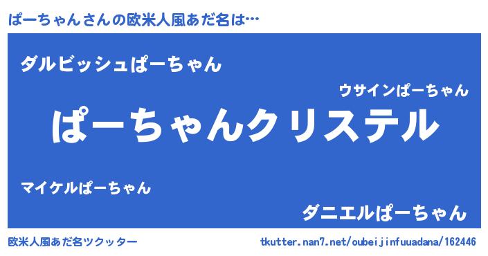 | 男性向けラノベタイトル風あだ名 | 『やはりぱーちゃんの青春ラブコメはまちがっている 』 |