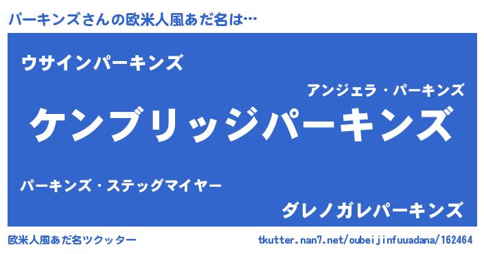 | 男性向けラノベタイトル風あだ名 | 『Re:パーキンズから始める異世界生活』 |