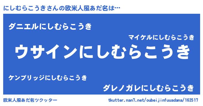 | 意味不明あだ名 | 『とにかく怪しいにしむらこうき』 |