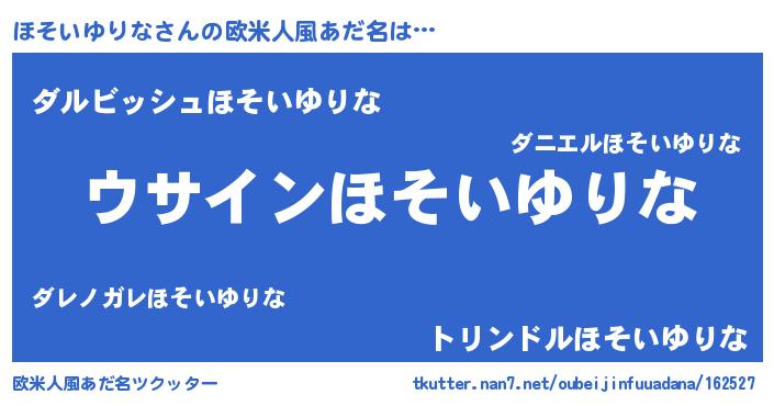 | 男性向けラノベタイトル風あだ名 | 『ダンジョンにほそいゆりなを求めるのは間違っているだろうか』 |