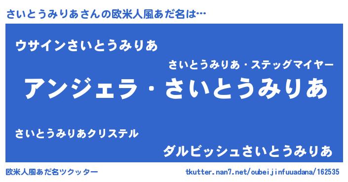| 意味不明あだ名 | 『とにかく怪しいさいとうみりあ』 |