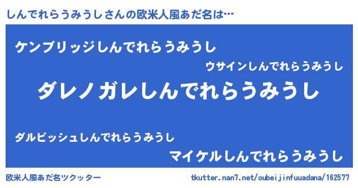 | 意味不明あだ名 | 『住所不定無職しんでれらうみうし(4歳)』 |