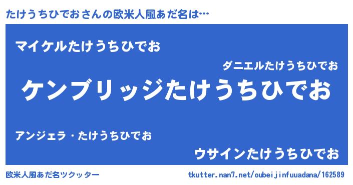 | 女子向けラノベタイトル風あだ名 | 『たけうちひでおなんてお断りですっ。』 |