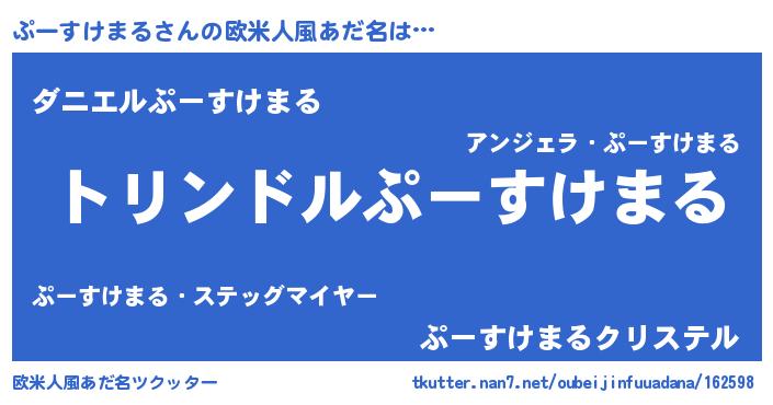 | 男性向けラノベタイトル風あだ名 | 『ぷーすけまる~年齢イコール彼女いない歴の魔法使い~』 |