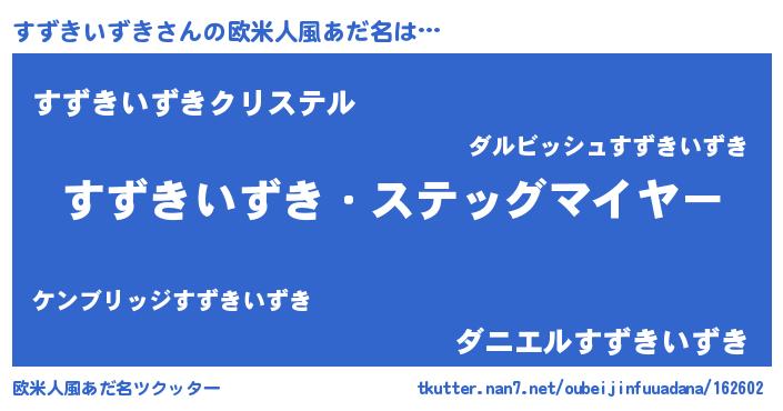 | 男性向けラノベタイトル風あだ名 | 『緋弾のスズキイズキ』 |
