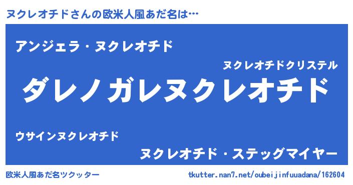 | 男性向けラノベタイトル風あだ名 | 『この素晴らしい世界にヌクレオチドを!』 |