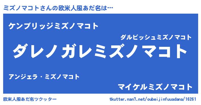 | 意味不明あだ名 | 『住所不定無職ミズノマコト(1歳)』 |