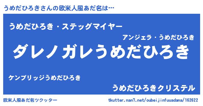 | 男性向けラノベタイトル風あだ名 | 『この素晴らしい世界にうめだひろきを!』 |