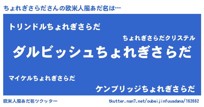 | 意味不明あだ名 | 『永久保存ちょれぎさらだ』 |