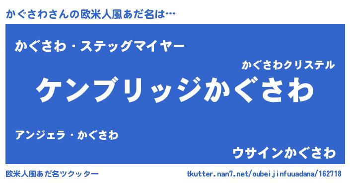 | 男性向けラノベタイトル風あだ名 | 『Re:かぐさわから始める異世界生活』 |