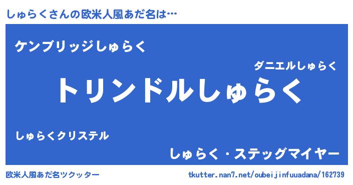 | 男性向けラノベタイトル風あだ名 | 『転生したらしゅらくだった件』 |