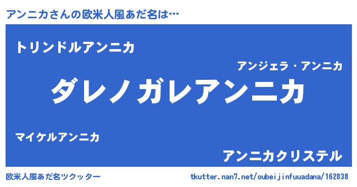 | 意味不明あだ名 | 『住所不定無職アンニカ(40歳)』 |