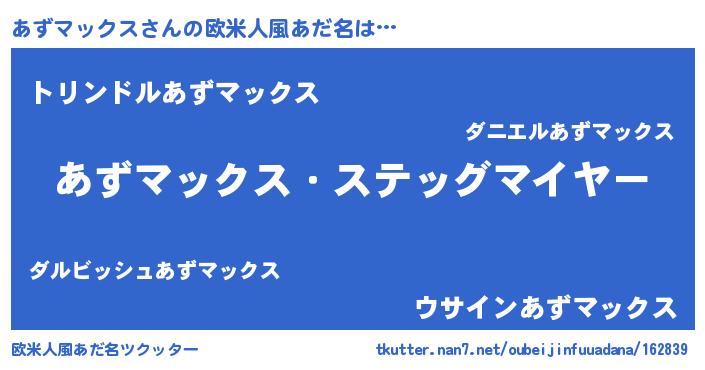 | 男性向けラノベタイトル風あだ名 | 『緋弾のアズマックス』 |