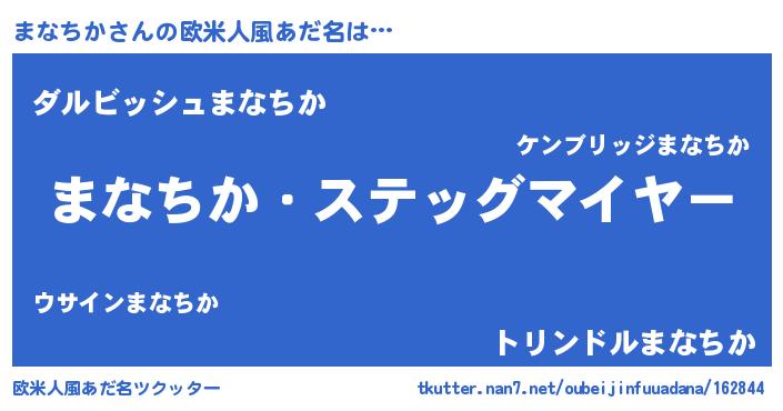 | 男性向けラノベタイトル風あだ名 | 『うちのまなちかが世界を掌握している!』 |