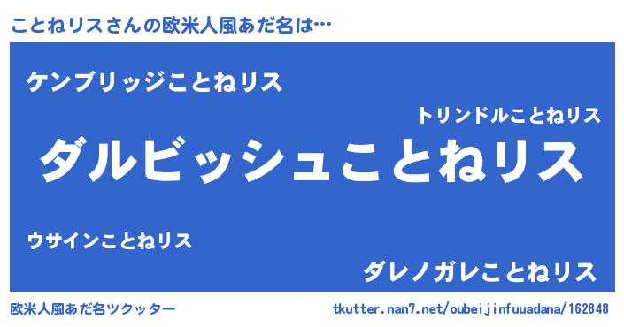 | 男性向けラノベタイトル風あだ名 | 『ことねリスという概念が存在しない退屈な世界 』 |