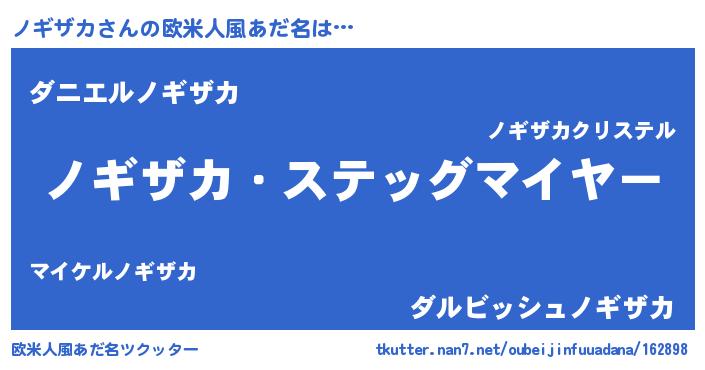 | 男性向けラノベタイトル風あだ名 | 『うちのノギザカが世界を掌握している!』 |