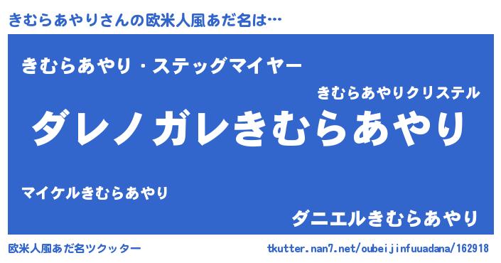 | 女子向けラノベタイトル風あだ名 | 『乙女ゲームの破滅フラグしかない悪役きむらあやりに転生してしまった…』 |