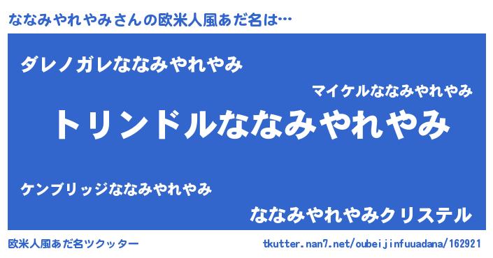 | 男性向けラノベタイトル風あだ名 | 『転生したらななみやれやみだった件』 |