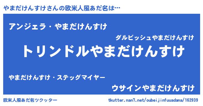 | 男性向けラノベタイトル風あだ名 | 『転生したらやまだけんすけだった件』 |