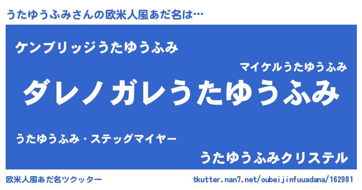 | 意味不明あだ名 | 『住所不定無職うたゆうふみ(47歳)』 |