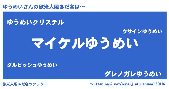 | ポケモン風あだ名 | 『ユウチュウ』『ユウメダネ』 |