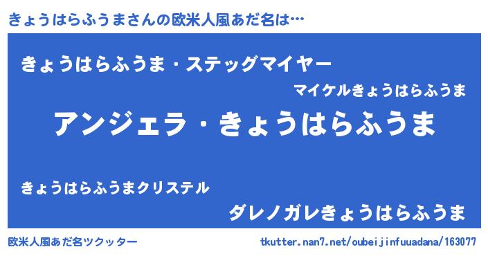 | 意味不明あだ名 | 『住所不定無職きょうはらふうま(65歳)』 |