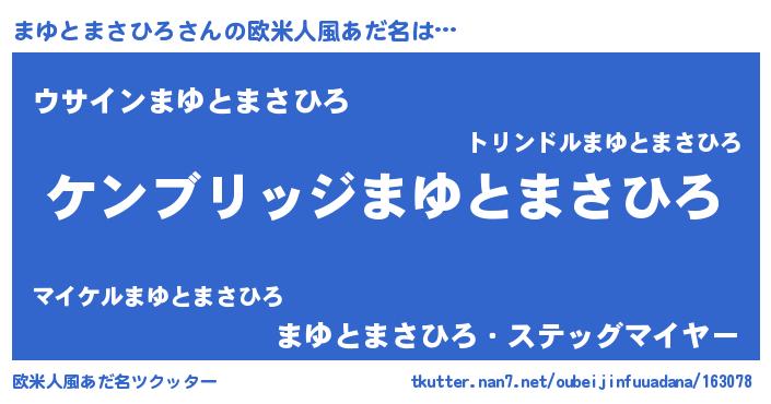 | 意味不明あだ名 | 『自称まゆとまさひろ』 |