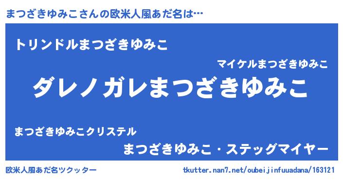 | 男性向けラノベタイトル風あだ名 | 『この素晴らしい世界にまつざきゆみこを!』 |