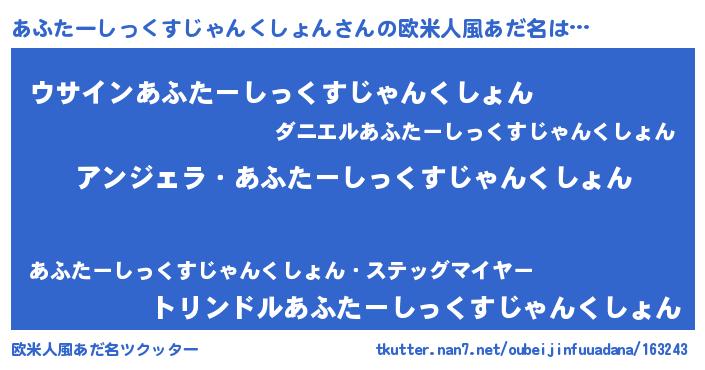 | 意味不明あだ名 | 『とにかく怪しいあふたーしっくすじゃんくしょん』 |