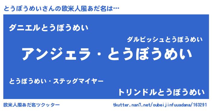 | ヘコむあだ名 | 『とうぼうめい(爆)』『とうっ子』 |