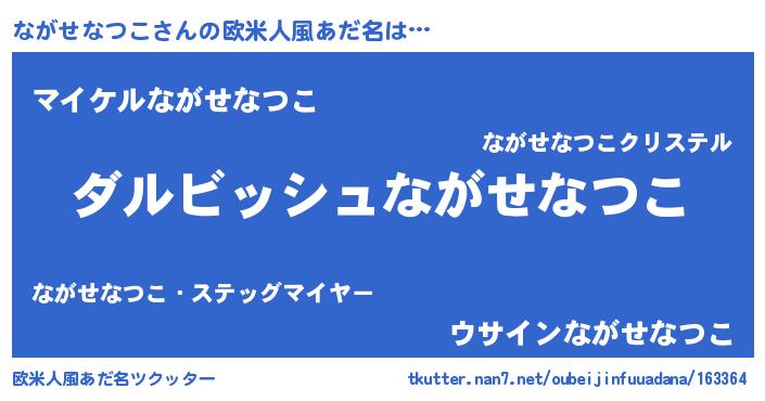 | 女子向けラノベタイトル風あだ名 | 『異世界で失敗しない100のながせなつこ』 |