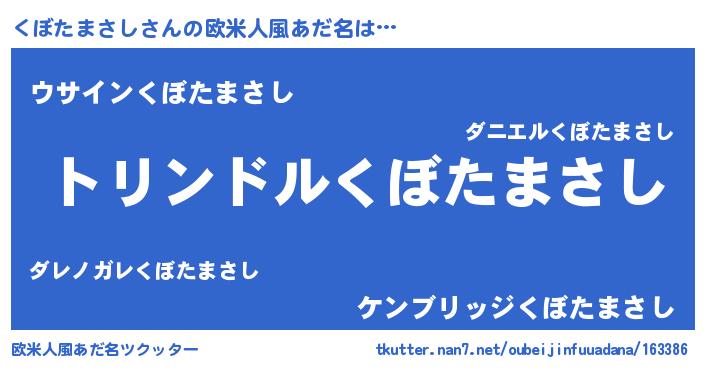 | 男性向けラノベタイトル風あだ名 | 『くぼたまさし~年齢イコール彼女いない歴の魔法使い~』 |