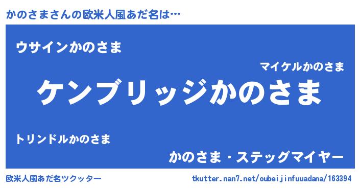 | 男性向けラノベタイトル風あだ名 | 『Re:かのさまから始める異世界生活』 |